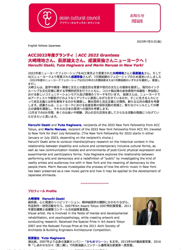 活動名 | アジアン・カルチュラル・カウンシル(ACC) ジャパンプログラム 2023 ![]() |