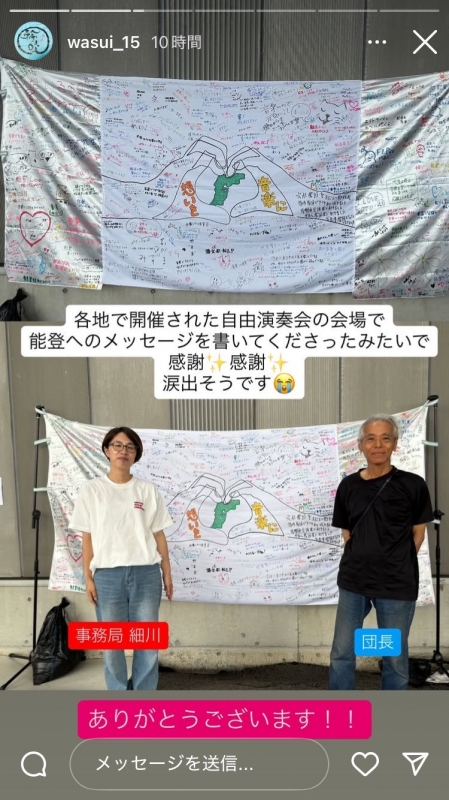 年明けから、以下全国の自由演奏会で能登半島の自由演奏会に向けて寄せ書きを行いました。
