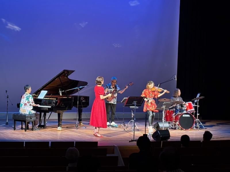 2025年9月7日(日)震災の影響が少なく、使用可能だったラポルトすずを会場にフリージャズの名手、スガダイローによる即興ソロピアノの演奏と大阪を拠点に全国で活躍するREIKOを中止としたREIKO BAND(REIKOvn、宮川真由美P、ZINGOROb、高野正明ds)に金沢の人気ヴォーカリスト中本美智子を加えたクインテットによるジャズのスタンダードナンバーやオリジナル曲のコンサートを約80名の観客を迎え開催。